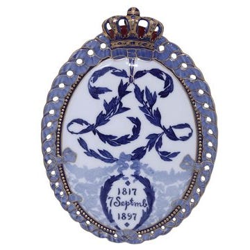 Royal Copenhagen Mindeplatte fra 1898 med guldkant Kong C