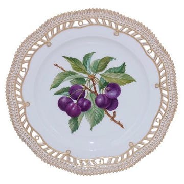 Royal Copenhagen Flora Danica, frugttallerken dekoreret med stikkelsbær og med gennembrudt kant.