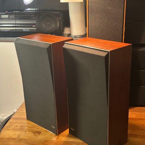 Klassiske B&O vintage højttalere i flot dansk design med træfinér og originale fronter. Kendt for god lydkvalitet og solid byggekvalitet.