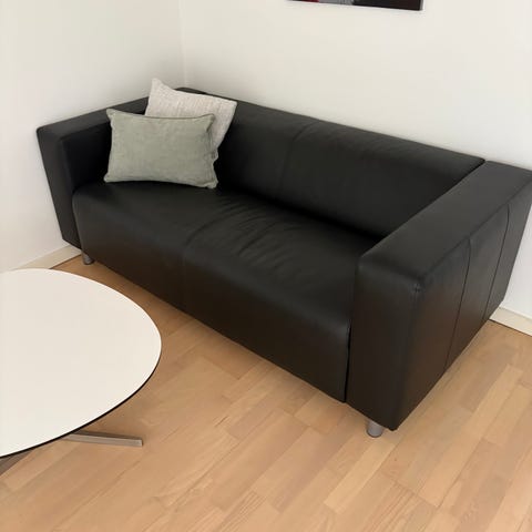KLIPPAN, 2pers. sofa - velholdt gråt betræk - plus et helt nyt ekstra betræk følger med (også gråt). Siddedybde: 54, siddehøjde: 43, siddebredde: 140.