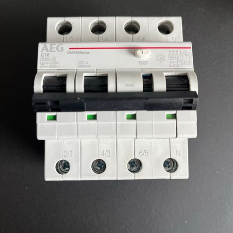 RCD/fejlstrømsafbryder 4P 40A 300mA klasse B-Si AC/DC. Den er velegnet til installation af ladestandere til biler.