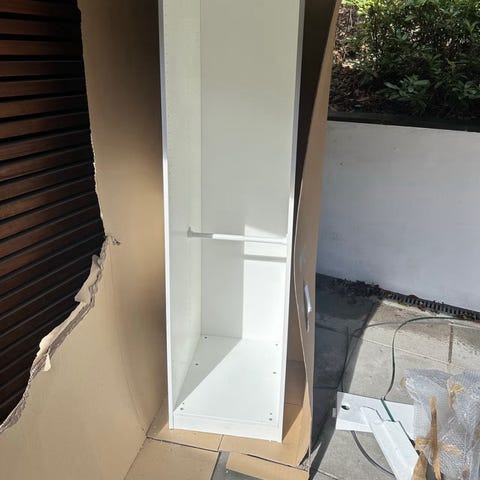 Der er boret 2 små huller i venstre side, hvor skabet har været spændt sammen og til at gennemføre strøm til lamper