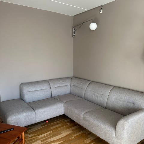 Koksgrå hjørnsofa. Pæn og velholdt uden slid og med god siddekomfort.