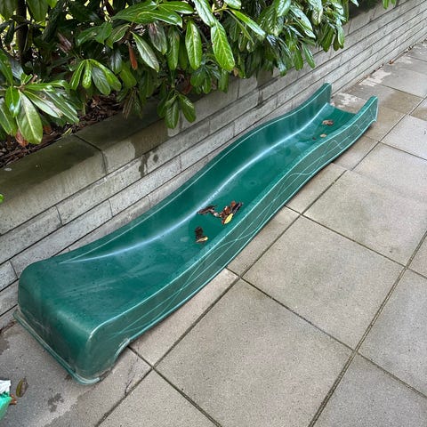 Det er boltet fast til jordanker, så det burde være til at skrue løs.