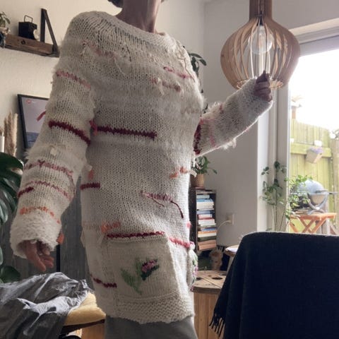 Inspireret af Lærke Bagger, med synlige tråde og garn-ender.