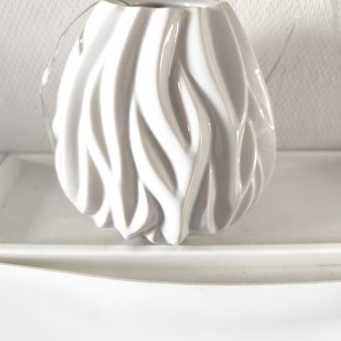 Bølgeformet vase i hvidt materiale med en glat overflade, der er perfekt til moderne indretning eller som dekoration.
