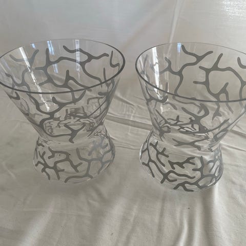 Hvidt glasvase med elegant timeglasform, ideel til moderne dekoration og blomsterarrangementer.