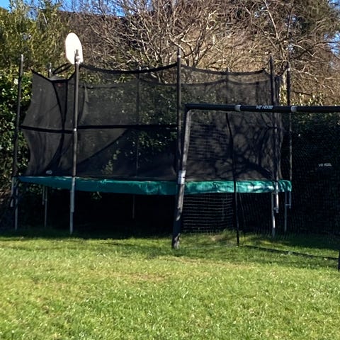 Sælger vores BERG trampolin i grøn inkl. sikkerhedsnet og vinter overdækning.