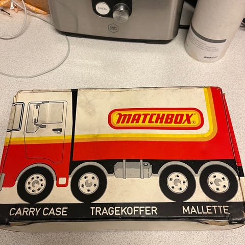 MATCHBOX 75 COLLECTION. Stået i mine forældres kælder i mange år idet min kære mor dengang arbejdede i MATCHBOX. De 77 biler har aldrig været ude at holderen og fremstår som nye. Holderen derimod er desværre skadet som kan ses på fotos. Jeg ved faktisk ikke hvad samlingen er værd i kroner/øre, så har sat den til kr. 2.500,00. Bud i op- og nedadgående retning modtages. Sælges kun til DBA brugere registreret med MitID og betaling via Mobilepay overførsel.