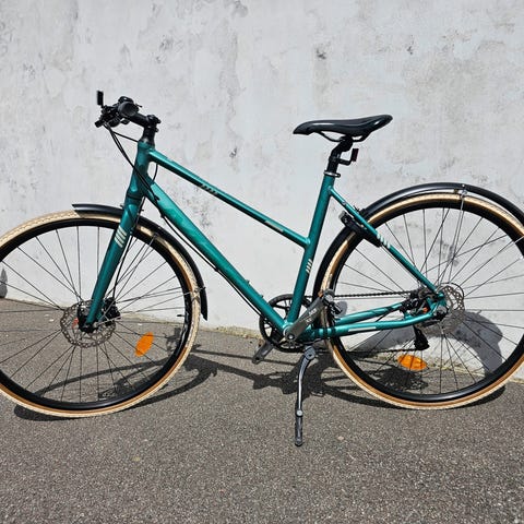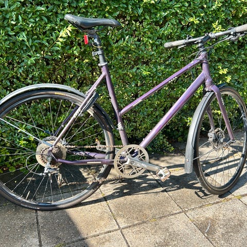 Let brugt MBK Airborn 8 cykel fra 2024, som sælges da jeg har lunge problemer og ikke bruger den nok. Den er i god stand, dog synligt brugt, og kommer med en del tilbehør. Den har 8 gear Shimano Claris gear, og der er sat dejlige "Hermanns Ergo Nucore Tour" håndtag på. Den kommer med en ringlås og en ekstra tyk forsikringsgodkendt kædelås hvis den skal låses op i det offentlige. Desuden kommer den med en 4000 lumen forlygte som nemt lyser alt op foran, hvis man skulle en tur i skoven i mørke.