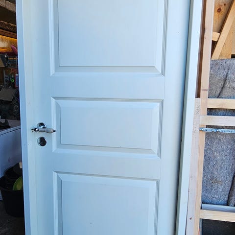 Indvendig døre i hvid farve med mål ca. 204 x 53 cm. Døren fremstår som en klassisk glat dør, egnet til brug inde i boligen, f.eks. som værelse-, skabs- eller gangdør. Døren har hængsler monteret på kanten.. Karm medfølger. 2 store døre og en mindre