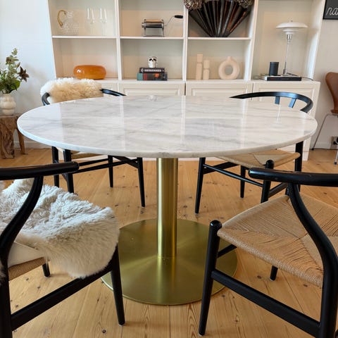 Rundt marmorspisebord m. guld fod