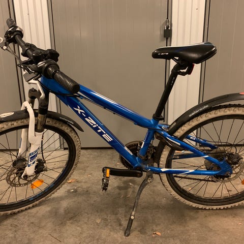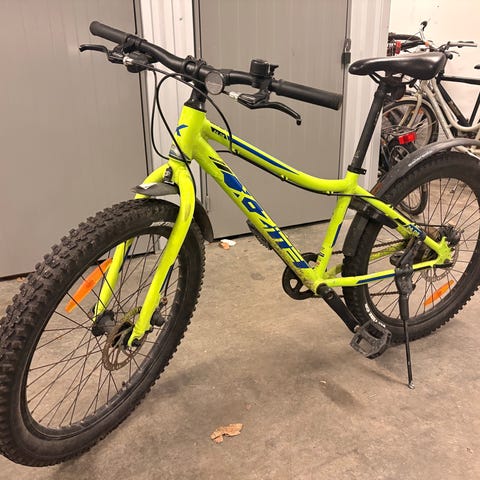 Flot aluminiumsstel i blå med neongule stafferinger, med kraftig støddæmpet forgaffel, som giver dig bedre kontrol og mere stabilitet, når det går stærk i kuperet terræn.