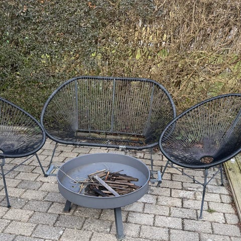 Have-/altanmøbelsæt loungesæt med sofa, to stole og bord metal sort
