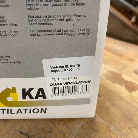DuKa PRO 35 ventilator i hvid. Vægmonteret ventilator egnet til ventilation af mindre rum som badeværelse, toilet eller bryggers. Enheden er beregnet til fast installation i ventilationskanal. Produktet leveres i original emballage med de tekniske specifikationer angivet på kassen, herunder CE-mærkning og standard strømtilslutning til husholdningsbrug.
