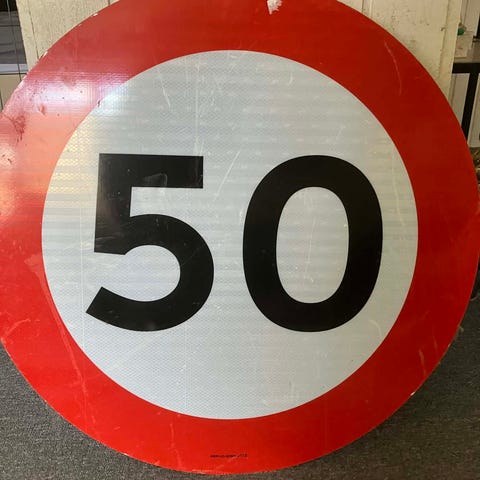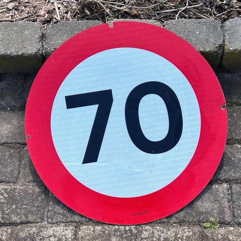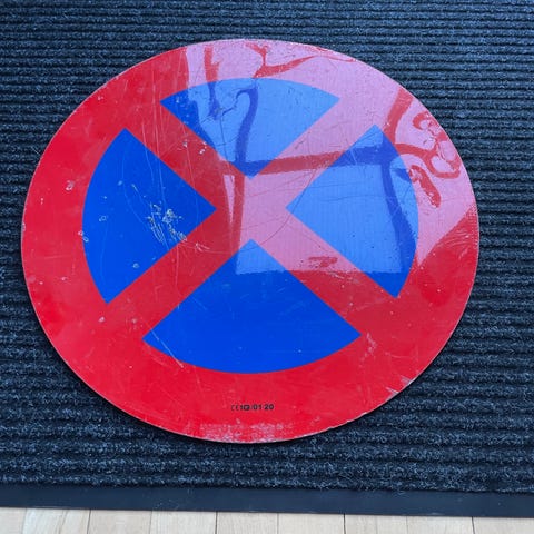 Færdselstavle forbud mod knallert rund metalskilt rød hvid