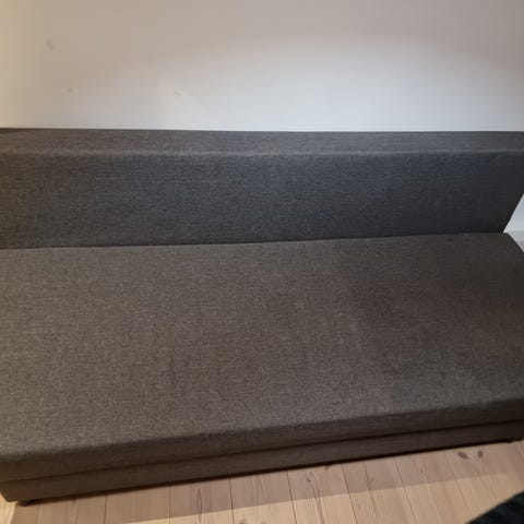 IKEA Älvdalen sovesofa med opbevaringsplads til sengetøj. Sofaen kan slås ud til en liggeflade, (194 cm x 135 cm), som kan bruges som ekstra seng. Den har en enkel, lige ryg og 3 aftagelige ryghynder. Ben i mørkt materiale. Velegnet til stue, gæsteværelse eller mindre rum, hvor der er behov for både sofa og soveplads. Skal afhentes på 3. sal.