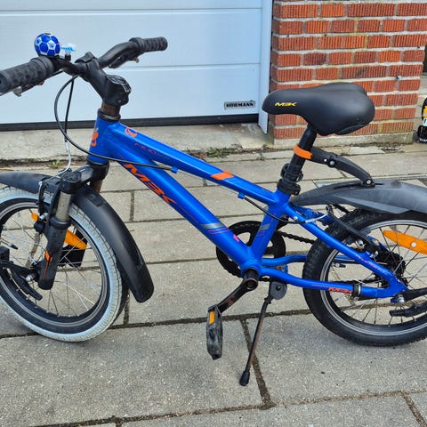 Lækker MBK børnecykel / drengecykel med 16" hjul og 3 shimano gear. Cyklen er sort med gule detaljer og har lige styr, en god saddel samt skærme for og bag. Der er monteret lås og dynamo baglygte. Der er både fodbremse og håndbremse. Alt kører som det skal. Den har stået inde det meste af tiden lige på nær 5 måneder ude, hvilket ses på nogle af skruerne, men ellers i flot stand. Passer ca. 5-8 års alderen afhængig af barnets højde, men det er den periode vi har brugt den. Min søn har været glad for den.