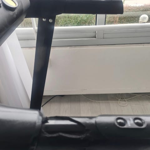 Løbebånd med digitalt display og enkel betjening på frontpanelet. Egnet til gang og løb i hjemmet. Har fladt løbefelt og sidegelændere for støtte. Strømtilslutning via almindelig stikprop. Passer til indendørs brug, f.eks. i stue eller træningsrum.