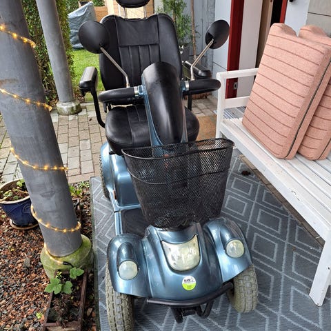 Vevor knæ-scooter i sort med fire luftgummihjul og justerbart styr. Scooteren har polstret knæstøtte og håndbremser på styret. Foran er der monteret en aftagelig opbevaringskurv/taske til personlige ejendele. Egnet som ganghjælpemiddel ved skader eller operation i fod, ankel eller underben, hvor belastning skal undgås. Velegnet til indendørs brug og på jævne udendørs underlag.