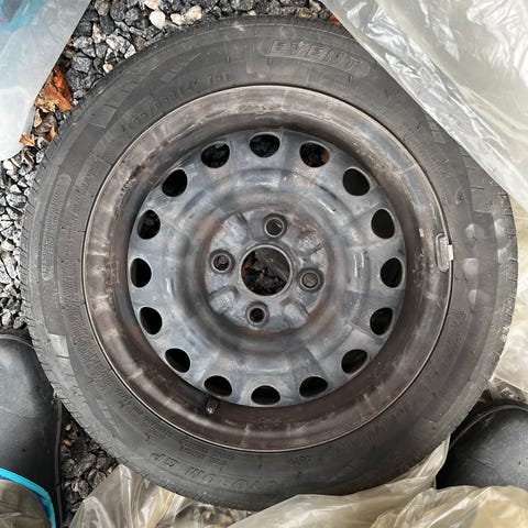 Stålfælge i sølvfarve til personbil. Fælgene er 13 tommer og har 4 bolthuller. Egnede som standard stålfælge til brug med dæk i passende størrelse, f.eks. 175/70 R13 som vist på billederne. Slidte vinterdæk sidder på . Ring eller sms: 23361984.