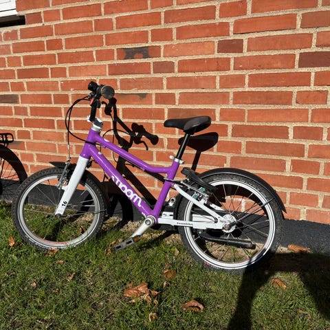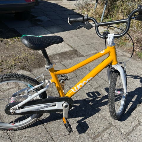 Woom 3 automatic børnecykel med 16" hjul. Den er i god stand. Den er nye blevet serviceret. Der er kun en lille hul i sadlen, som nemt kan repareres eller udskiftes.( ny woom sadel 250 kr) Vi er meget glad med den cykel og vil gerne købe Woom 4. Nye pris 4300 kr