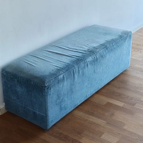 Sælger vores flot blå sofa! Den kommer fra et røg- og dyrefrit hjem. Den er lidt falmet af solen, men er ellers i god stand.