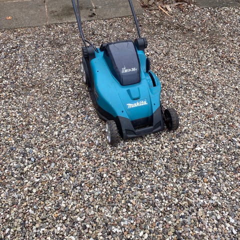 Super effektiv Makita græsslåmaskine incl 2 stk. 5 ah batteri og dobbelt lader samtbladopsamler.