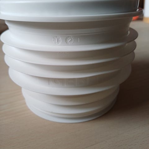 Klosettilslutning, Ø110/130 mm til 110 mm plastafløbsrør og støbejerns muffe.
