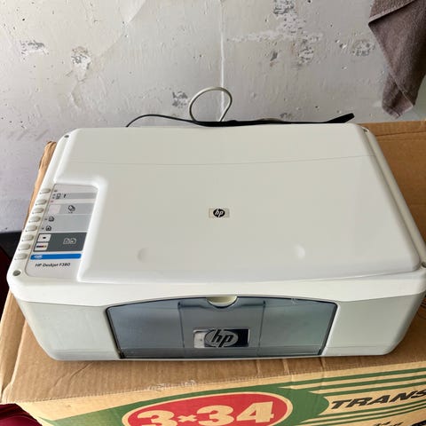HP Deskjet 3000 printer i sort. Passer godt ind til print i ny og næ, med dens lille størrelse.