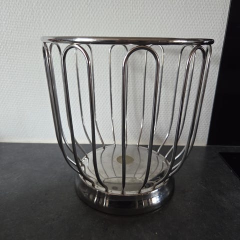 Alessi skål i blå farve. Skålen står på et formet stativ med ben, som giver den et dekorativt udtryk. Egnet til servering af mindre snacks eller som dekorativ skål i køkken eller stue.