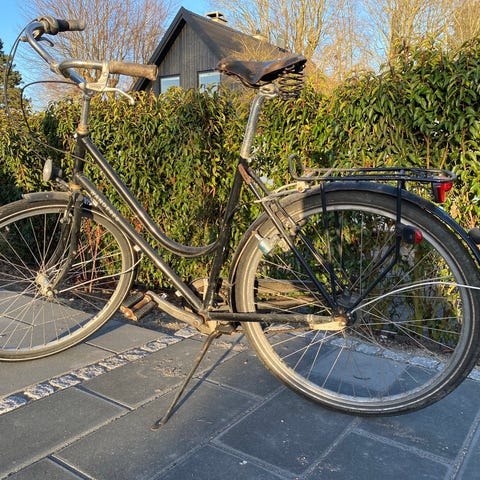 Denne cykel fungerer helt fint som en stationscykel. Gearet er i stykker, men måske det kan laves.