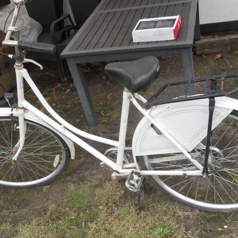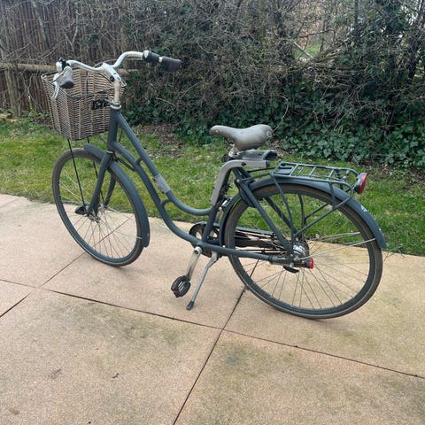 En damecykel købt i Kvickly. Den fungerer perfekt, dog er styret sidder skævt og støttebenet lidt løst - 1000kr