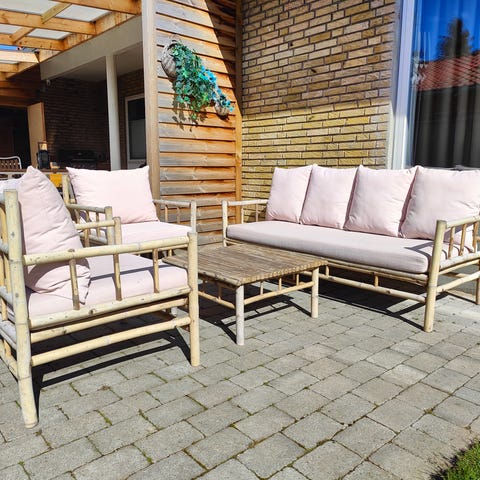 Sættet består af flere modulopbyggede loungemøbler i bambus, som kan sammensættes til hjørnesofa eller enkeltstående siddepladser. Der medfølger to lave bambusborde, som kan bruges som sofaborde eller sideborde.