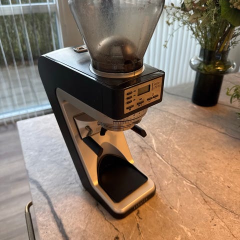 Vario kaffekværn fra tyske Mahlkönig - samme model som Baratza Vario - med keramiske kværnknive og trinløse indstillinger. Det gør Vario'en vejegnet til at male hele kaffebønner groft til stempelkaffe, mellemfint til filterkaffe eller fint til espresso.