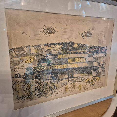 Andet, Max Brünning, motiv: Landskab, b: 18 h: 17, Original radering af palæ.