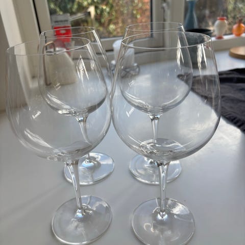 2 pak. 6 pakker. 12 stk aldrig brugt Bourgogne vinglas. Sælges samles for 800 kr. De trænger til en vask