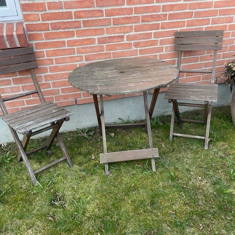 Patina havebord med stol, 1 stk plade er løs se billed….