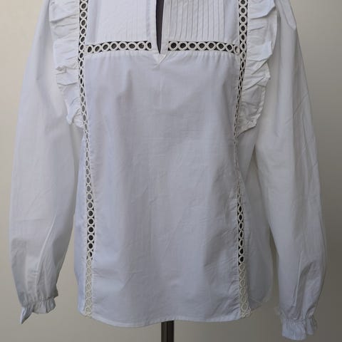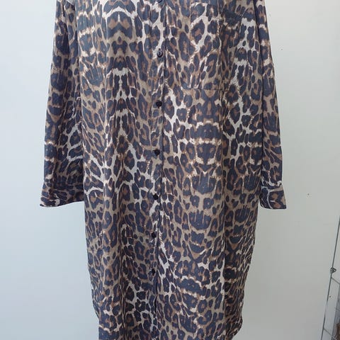 Slids i sider og vatteret, måler 2x61cm over bryst og længden er 74cm.