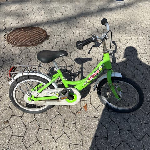 Puky ZL 16 børnecykel med 16" hjul. Cyklen har blå og grå stel, kædeskærm, støttehjul, bagagebærer, skærme og reflekser. Styret er udstyret med styrpude med Puky-logo. Velegnet som børnecykel i den størrelse, der passer til 16" hjul. Den er aldrig brugt, men har stået i vores udhus - derfor lidt rust der dog er rent kosmetisk.