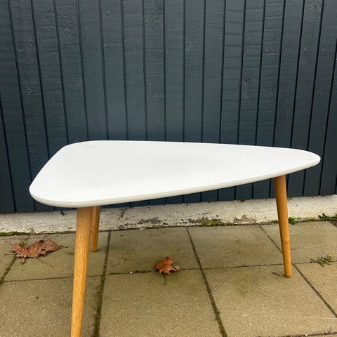 Hvidt sofabord bortgives. Trænger til en slibning og lidt maling, men fungerer fint.
