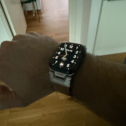 Apple Watch Midnight Alu smartwatch i sort. Uret har 41 mm Retina OLED touchskærm og leveres originale urremme som ikke har været brugt samt et metalarmbånd med justerbare led. Egnet til både mænd og kvinder og kan bruges til hverdag, træning og notifikationer fra en kompatibel iPhone. Oplader medfølger som vist på billederne.