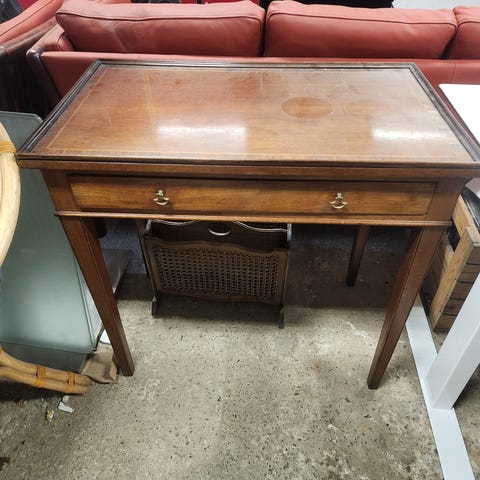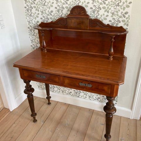 dette bord / konsolbord / skrivebord er antikt og fremstår med krakeleret lak. Nogle ville derfor male det om.