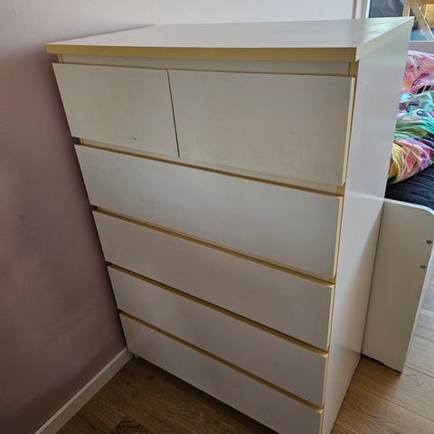 Den anden kommode mangler en enkelt plade på tværs ved af en skufferne. (Se billede)