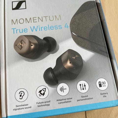 Næsten helt nye (brugt under fem gange) Sennheiser Momentum 4 Wireless-hovedtelefoner sælges, da de ikke bliver brugt. Æske medfølger.
