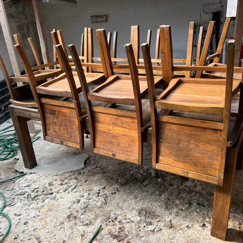 Stolene kommer med hynder og en boks til hynderne.
