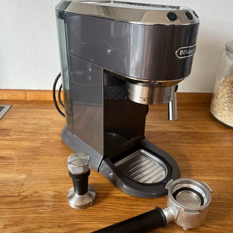De'Longhi Icona espressomaskine i sort med kromdetaljer. Maskinen har frontbetjente knapper til tænd/sluk, brygning og kontrol af klar-til-damp-funktion. Udstyret med damprør til opskumning og opvarmning af mælk samt drejeknap til regulering af dampmængde. Drypbakke og koprist i metal, med plads til to kopper ad gangen. Maskinen anvender formalet kaffe og har aftagelig filterholder. Velegnet til tilberedning af espresso og mælkebaserede kaffedrikke i hjemmet.