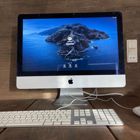 Apple iMac stationær computer. Alt-i-én computer med indbygget skærm og macOS installeret. Der medfølger Apple tastatur og kablet mus, som ses på billederne. Velegnet til almindelige kontoropgaver, internetbrug og medieafspilning. Yderligere tekniske specifikationer som skærmstørrelse, processor, lager og RAM fremgår ikke af oplysningerne og bør derfor afklares med sælger ved behov.
