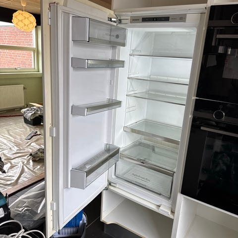 To af hylderne er revnet i plastikken men der kan fint stå ting på dem alligevel (se billederne).