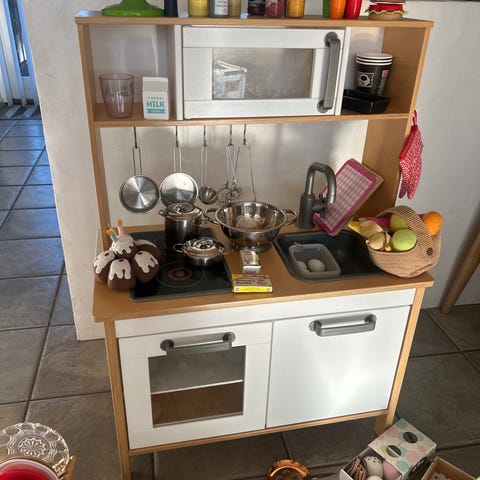 Legekøkken med lys i kogepladerne - står som helt nyt - er kun samlet og brugt kortvarigt.
